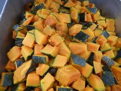 かぼちゃを大きく切って蒸し、崩れない様に最後にカレーの中に入れました。