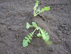 この畑にも実は桜島大根の双葉が育っていました。