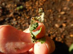 見えますか?一つは双葉が片方食べられ、一つはちょっとかじられている感じです。