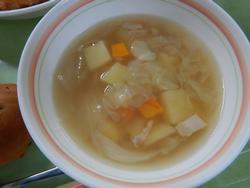 キャベツや玉ねぎを溶ける位まで煮てもらった白いんげん豆のスープと