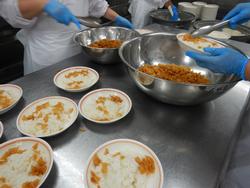 出来上がるといつものように盛り付けが始まります。