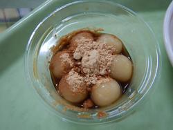 お月見団子です。この黒蜜も学校で作りました。