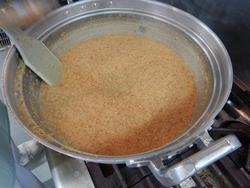 玉ねぎを甘くなるまで炒めてからマスタードを加えます。