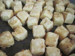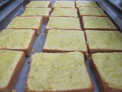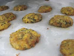 焼けた後、少し冷ましてからクッキングシートから取り除きます。そうしないとチーズが軟らかくて取れてしまうからです。