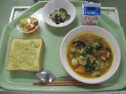 今日は、スイートポテトトースト 海藻サラダ カレーポトフ カクテルポンチ 牛乳でした。
