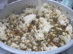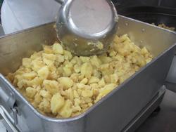朝から、給食室は、大量のじゃが芋の皮むき、蒸し、つぶし、そして形成で大忙しでした。
