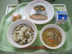 今日はおまめご飯 パリパリイワチー かぶとキャベツのごま和え 豆腐と油揚げの味噌汁 ぶどうゼリー 牛乳でした。