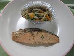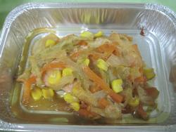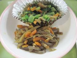 今日の副菜は2種類です。一つはアルミカップに入れて盛り付けました。