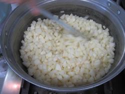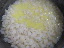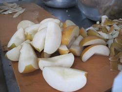 旬の梨(豊水)をバターで炒めてから最後にカレーの中に加えます。