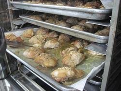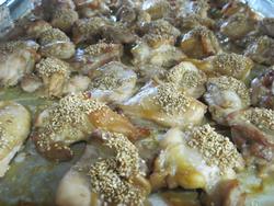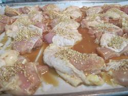 鶏肉に、塩・こしょう・ヨーグルト・カレー粉・ケチャップ・しょうが・にんにく・レモン汁で下味を付けて、オーブンで焼きます。