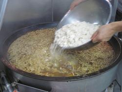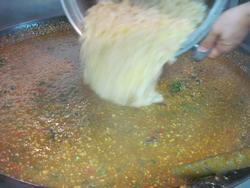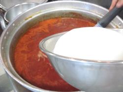 麺の日は、お釜が3つしかないので、ソースやスープを作るのも大変です。その後、麺を茹でなければいけないので。