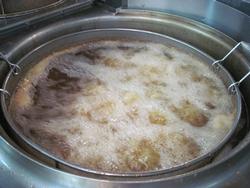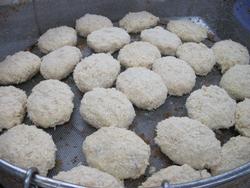 ソースを作っている間に、コロッケは続々と揚がっています。