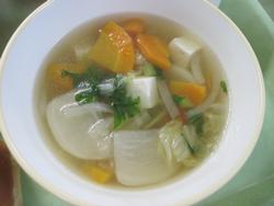 豚汁のお味噌は、だし汁で先に溶いておきます。こうするとお味噌が全体に固まらず広がります。