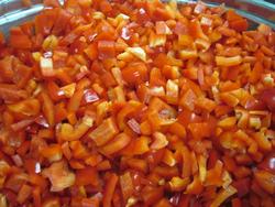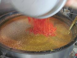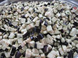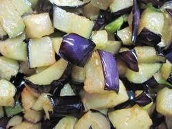 そして梨だけでなくパプリカ・なす・ピーマンを角切りにし、こちらは素揚げをしていきます。