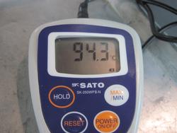 ナスも綺麗に揚がりましたよ。こうしてそれぞれの野菜を揚げては温度を計って記録しています。