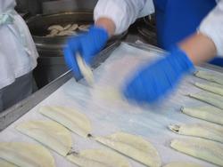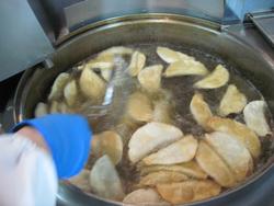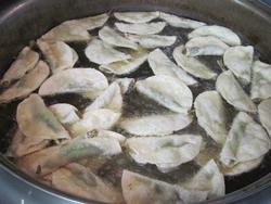 最初は、白い皮ですが、一つずつ丁寧に裏返して両面を綺麗な茶色に揚げてくれました。