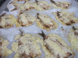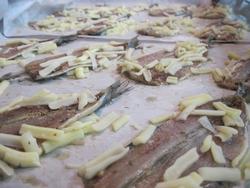 鰯をこしょうとオリーブオイル・そしてバジルでマリネをし、鰯のまわりにピザチーズを置いて、オーブンで焼きました。