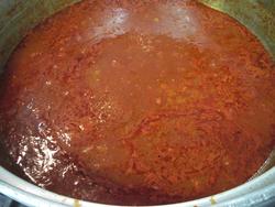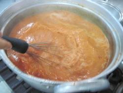 そこに、ホールトマトと少しの、ウスターソース・砂糖・塩・こしょう・コンソメで味付けをしました。