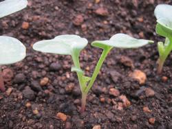 双葉の間から、形の違う本葉が出てきました。良かった!