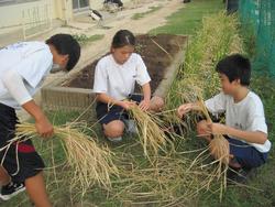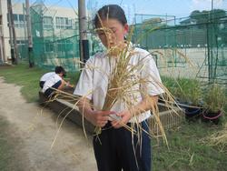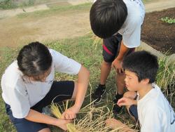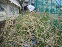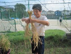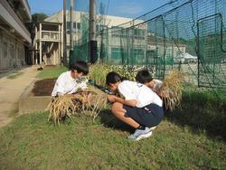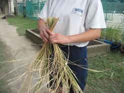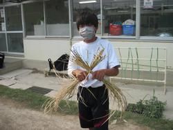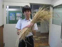 稲刈りをしているところに給食委員会の1年生のKくんがやって来ました。
