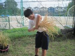9月8日(月)今日は、旧メンバーとKくんで稲刈りをしました。