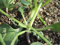 「やっぱり出て来たね・・・」「何がですか?」「見てわかる」「あ・・喰われてます」「そうそう軟らかいこの双葉の時に虫に喰われるんだよね」
