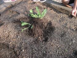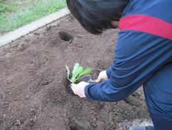 そして、昨日先輩たちが掘ってくれた穴があるので、そこに綺麗に植え直しました。