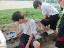 記念撮影です。「なんで僕が・・」と言っているIくんに収獲した南中米を持ってもらいました。