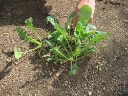 この中から良いのを選びます。4番目の大根は、予備の畑に土ごと持って移し替えます。