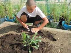 みんな種を小さいケースに一粒蒔き・・・虫がいない場所に移動します。