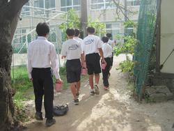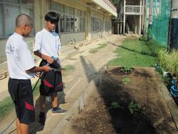 今日の水やり当番の人が、部活で他の場所に行くため、水やりが出来ず、代わりにNくんと、サッカー部のOくんが水やりをして、ホースを巻いてくれていました。