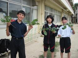 小金南中で桜島大根を育てています。メンバーは2年生9人のSAKURAメンバーズ です。