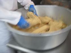 11時過ぎに、まだたくさんある揚げていないさつま揚げを見て、調理師さんに「揚げ時間何とかなりそうですか?」と聞いてみました・・・