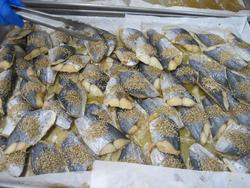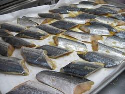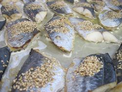 さばにウスターソース大さじ1:しょう油小さじ2:生姜適量:三温糖大さじ1(砂糖でも):酒小さじ2位の割合で混ぜた液に浸けておきます。