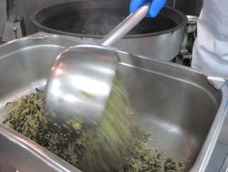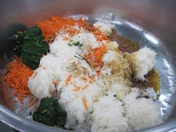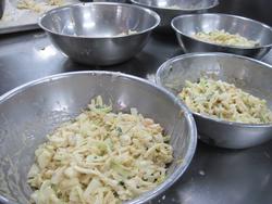 どちらも最後に混ぜるのですが、大変なのは、葉物は茹でて絞るとかなり固まってしまいます。