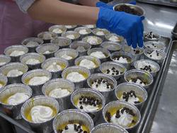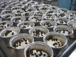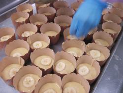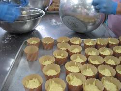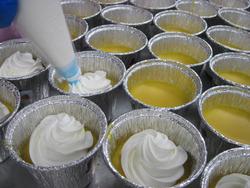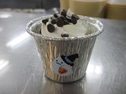 そして、プリンの絞りだし、チョコのトッピングで仕上げになります。