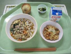 今日は、カレーうどん なめたけ和え 筑前煮 マーブル蒸しパン 牛乳でした。