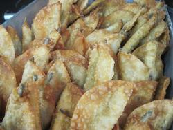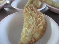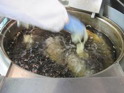 ぎょうざの皮が油の中でくっついてしまったり、下の部分だけ揚げ色が付いてしまうので、1個1個をひっくり返しながら丁寧に揚げてくれました。