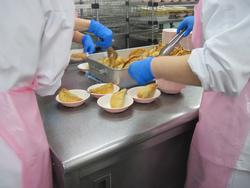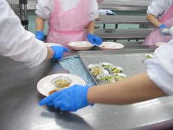 調理師さんたちと相談をし、最後にはれをかける予定でしたが、早めにソースとからめて盛り付けるようにしました。