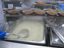 サラダはここで調整できるのでいいのですが、ご飯やスープなどを給食の時間に直接配食する調理師さんたちはかなり緊張してあの場所に立っているんですよ。