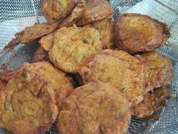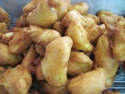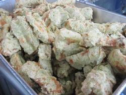 この衣は、ホットケーキミックスを卵と水で溶き、すりゴマを入れた衣でした。