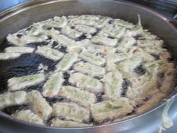 ちくわを天ぷら衣に青のりを入れて揚げました。