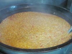 そして、キャロットライスです。これは、人参ジュースを入れて炊いたオレンジ色のご飯です。とっても綺麗な色に仕上がります。