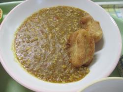 パンは、胚芽パンで、カレーは少し緩めでサンドにしても、つけて食べてもどちらでも良い料理にしました。