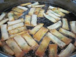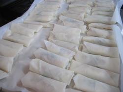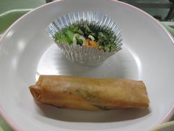 今日は、スティック状の鮭とチーズを入れた春巻きでした。