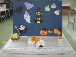 今日は、お月見メニューです。元、保育士さんだった用務員さんのSさんがこうして行事ごとに折り紙で掲示物を作って下さっています。