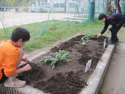 小金南中で桜島大根を育てています。メンバーは2年生9人のSAKURAメンバーズ です。