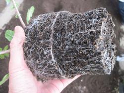 植え替えるために先に穴を掘り、一つの鉢を上手に逆さにしてみると・・・