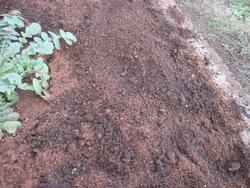 撒き終わったら、ピートモスと土を全体に混ぜていきます。