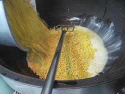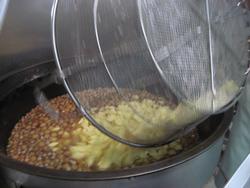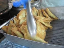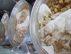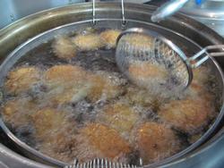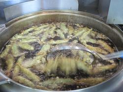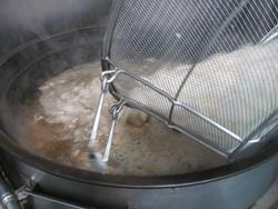 いつもは、一回で20個以上は揚がるのに、今日は15個位しか油の中に入りません。